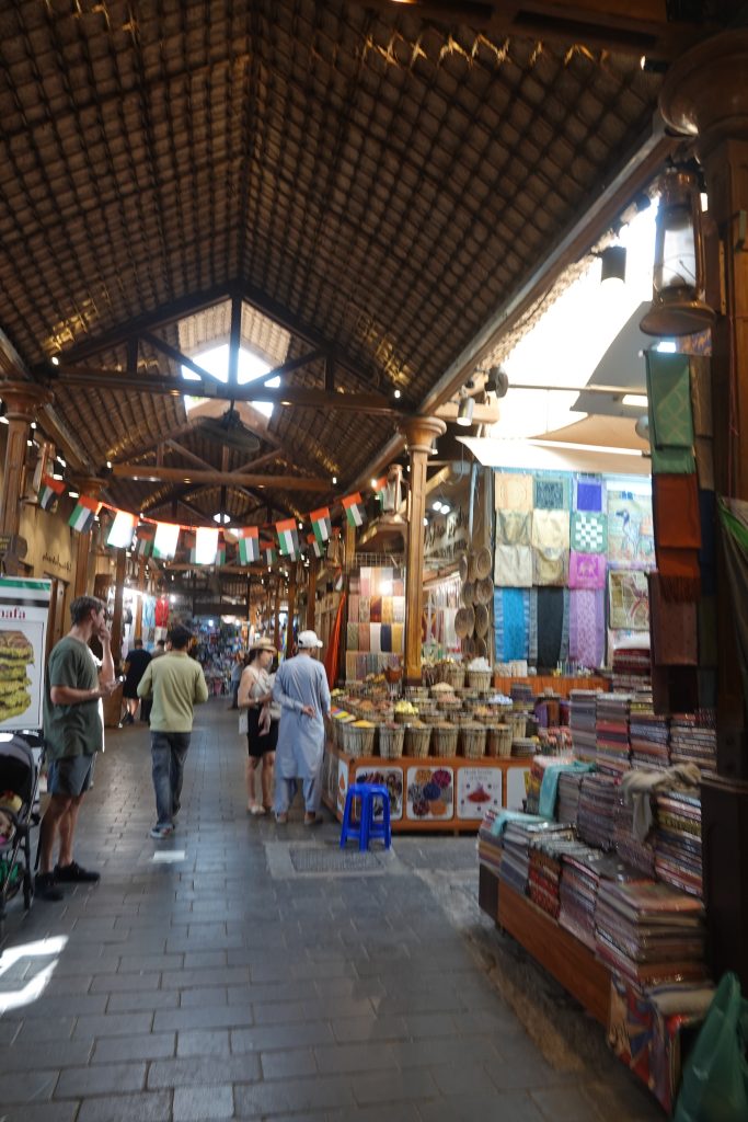 Le quartier historique d’Al Fahidi à Dubaï plonge dans l’histoire de l’émirat avec ses ruelles traditionnelles. Nous avons traversé la crique en abra, un bateau en bois typique, pour rejoindre les souks d’épices et d’or. Moins animés que ceux du Maroc ou d’Istanbul, les souks de Dubaï offrent toutefois une visite authentique et agréable, surtout au coucher du soleil.